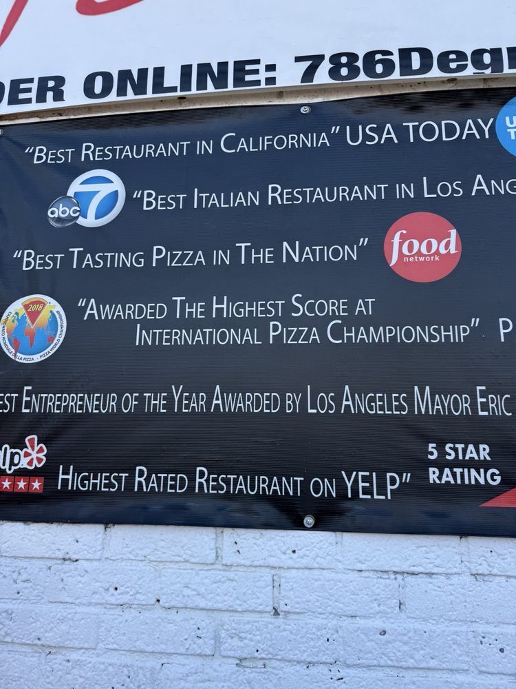 786 Degrees is a pizzeria in Los Angeles known for its Halal-certified, Neapolitan-style pizzas with unique toppings like Bombay Tikka Masala. The welcoming staff, led by owners Carlos, Brandon, and Jennifer, ensure a top-notch dining experience. Customers rave about the delicious thin-crust pizzas and diverse flavor options. The menu offers vegan and vegetarian choices, making it suitable for all dietary preferences. The cozy atmosphere, friendly service, and craft cocktails add to the overall charm of the restaurant. With free Wi-Fi, outdoor seating, and covered areas, 786 Degrees caters to a wide range of customers, including families and groups. Stop by for a taste of their exceptional pizzas, such as the popular "That's Amore" or the flavorful bumblebee sting. Don't miss the chance to indulge in a truly unforgettable pizza experience at 786 Degrees.